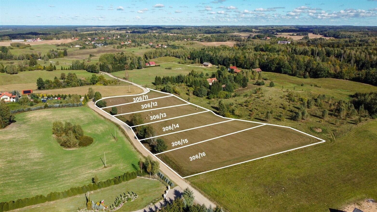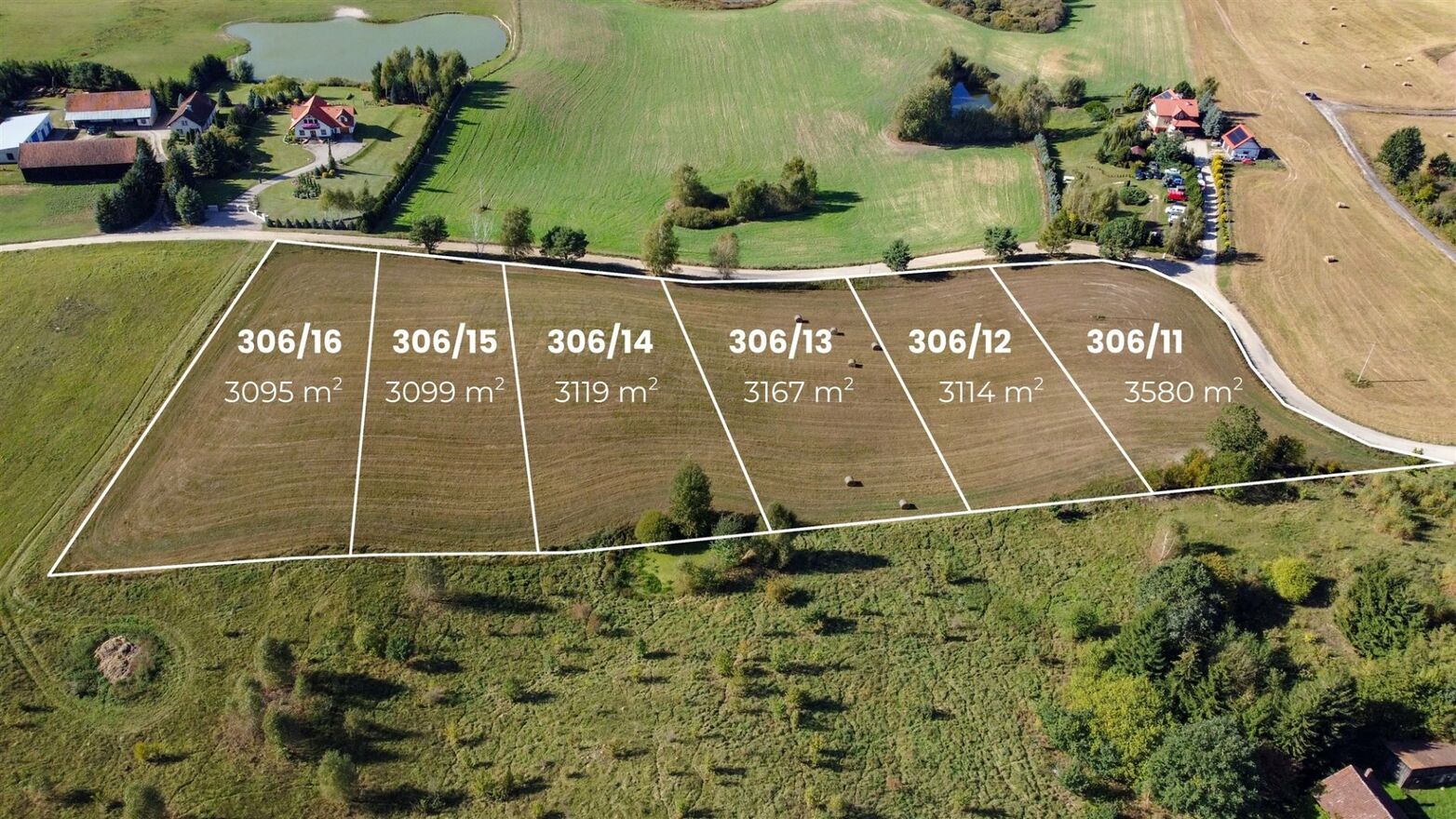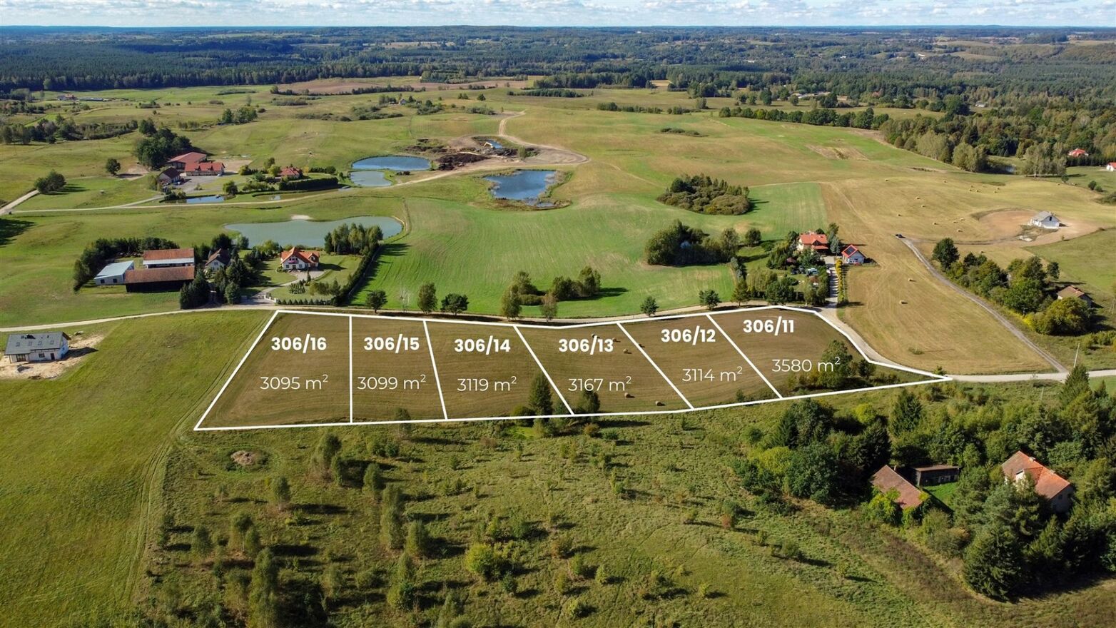 W sprzedaży 6 działek o powierzchni od 3095 m 2 do 3580 m 2 . Regularny kształt i zróżnicowany teren daje dużą swobodę w projektowaniu zabudowy.
